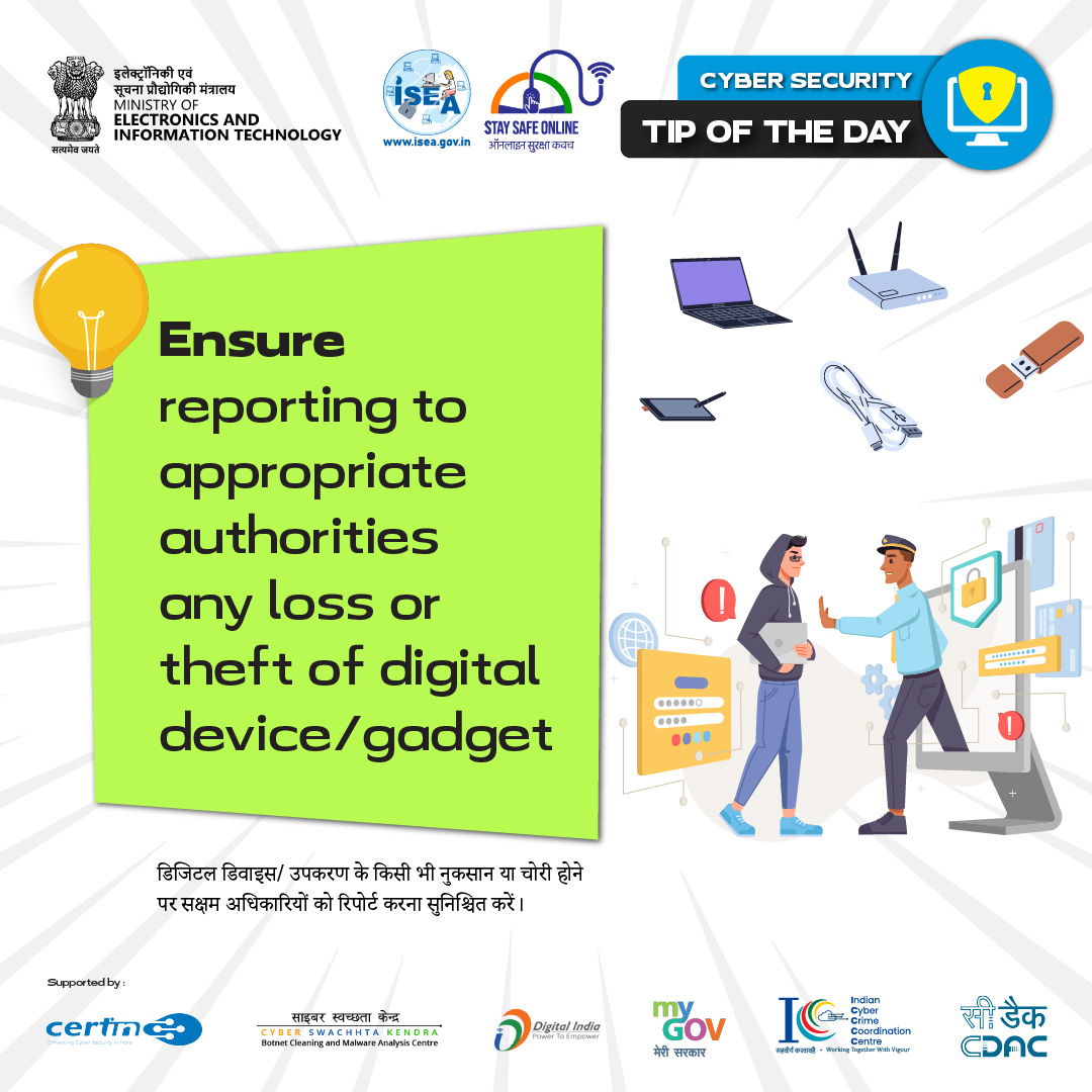 Ensure to report any loss of digital devices/gadget