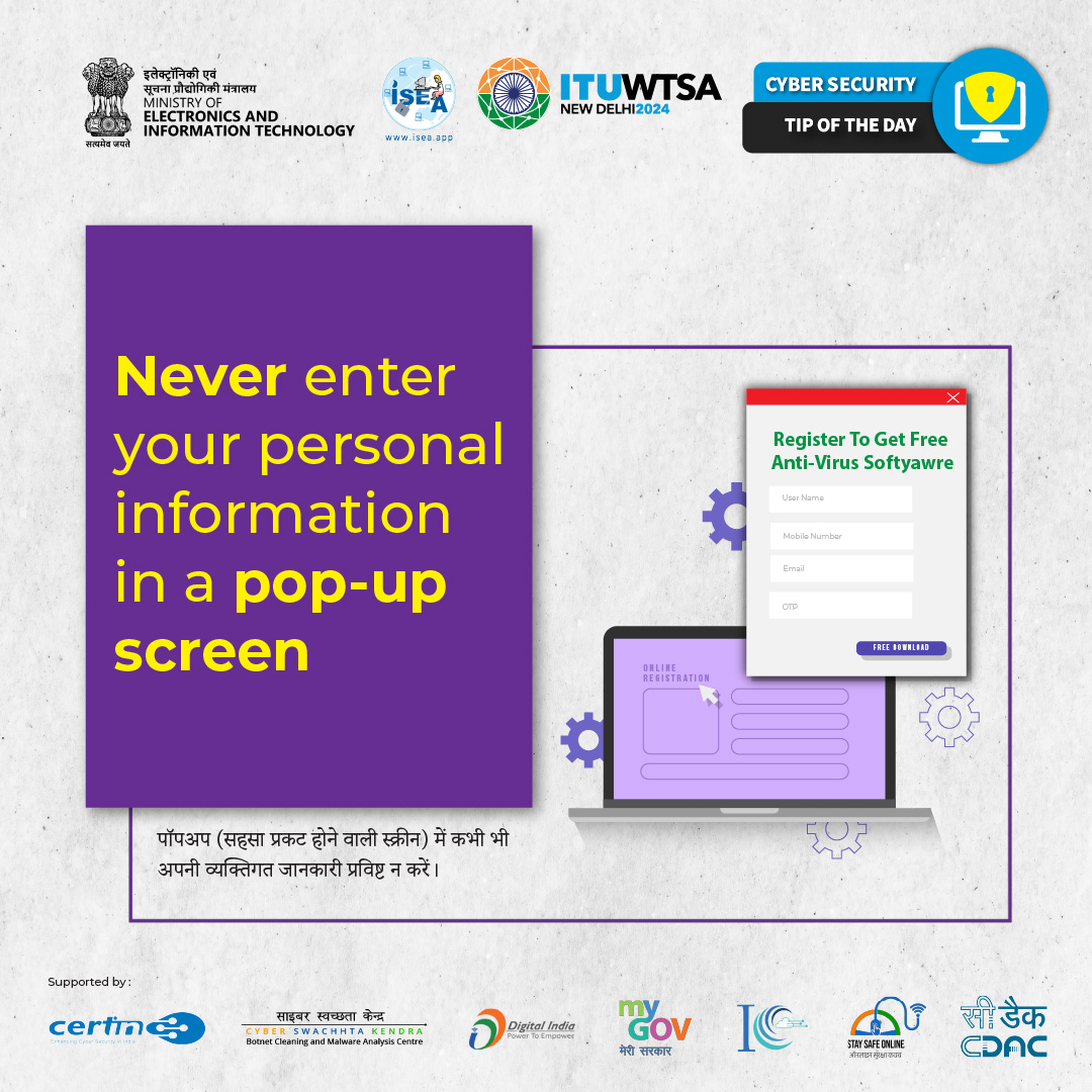 Never enter your personal Information in a pop up screen